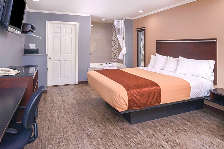 Room options span a wide range, from Economy and King to Suite and Jacuzzi King, plus several well-suited configurations like Executive and Deluxe King. Other available choices include Deluxe King - Non-Smoking, Room with Jetted Tub, Economy Double Room, Queen Room with Two Queen Beds - Non-Smoking, 2 Queen Beds - Non-Smoking, and 1 King Bed, offering flexibility for solo travelers, couples, and small groups.